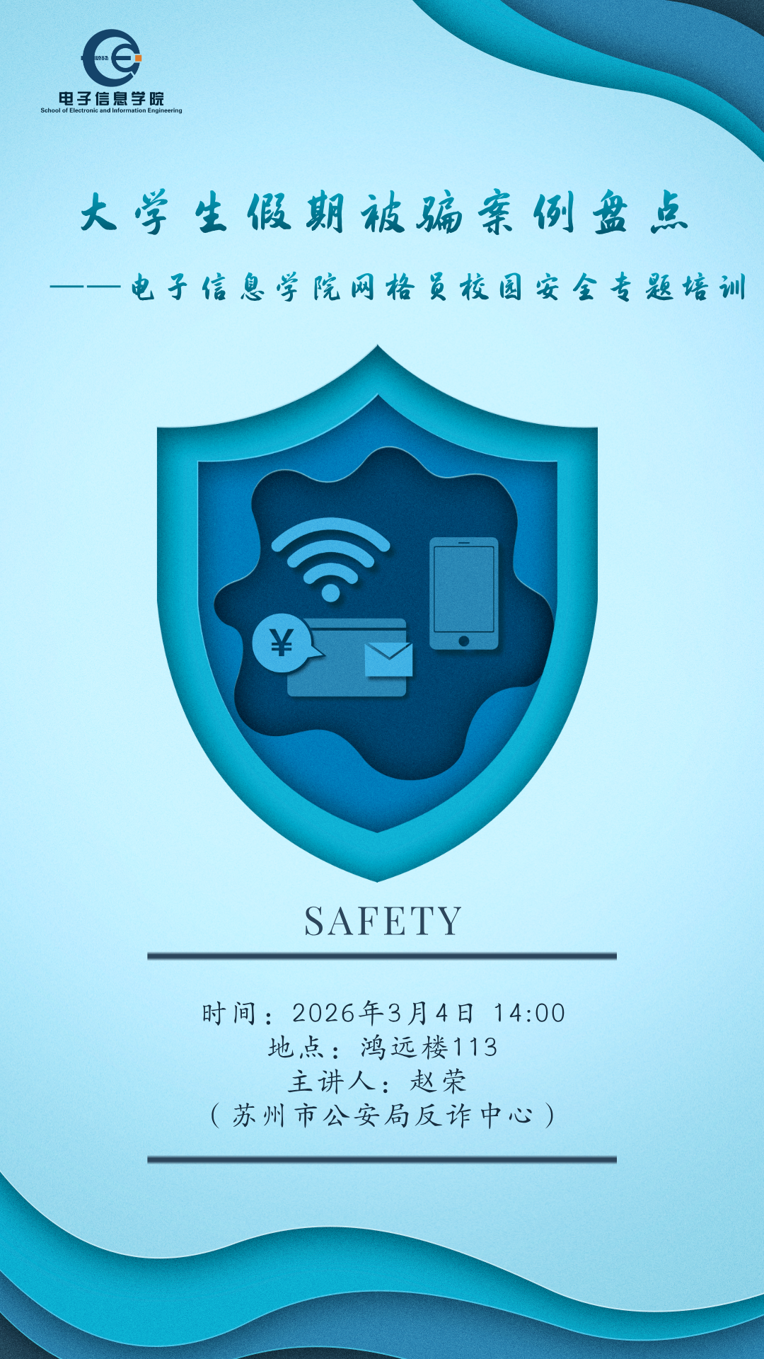大学生假期被骗案例盘点——电子信息学院网格员校园安全专题培训
