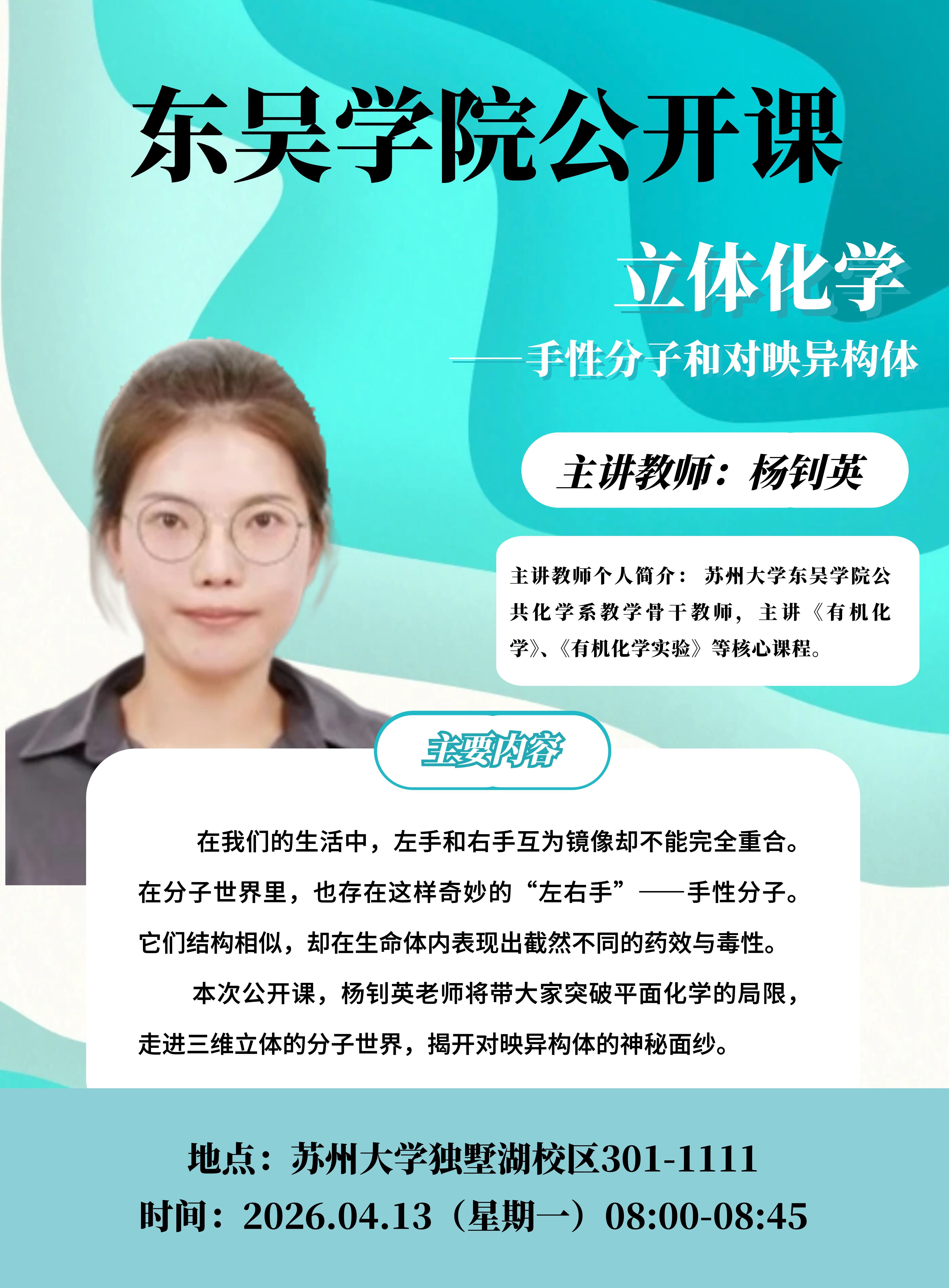 东吴学院公开课:立体化学—手性分子和对映异构体