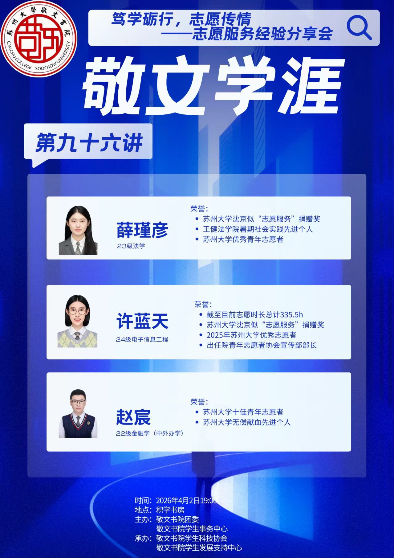 敬文学涯第九十六讲:笃学砺行,志愿传情——志愿服务经验分享会