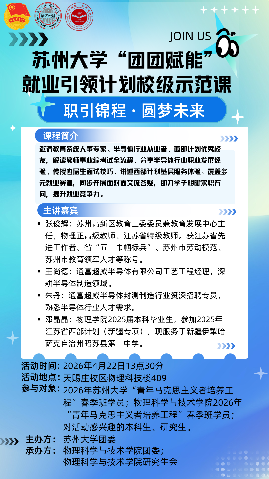 苏州大学“团团赋能”就业引领计划校级示范课:职引锦程·圆梦未来