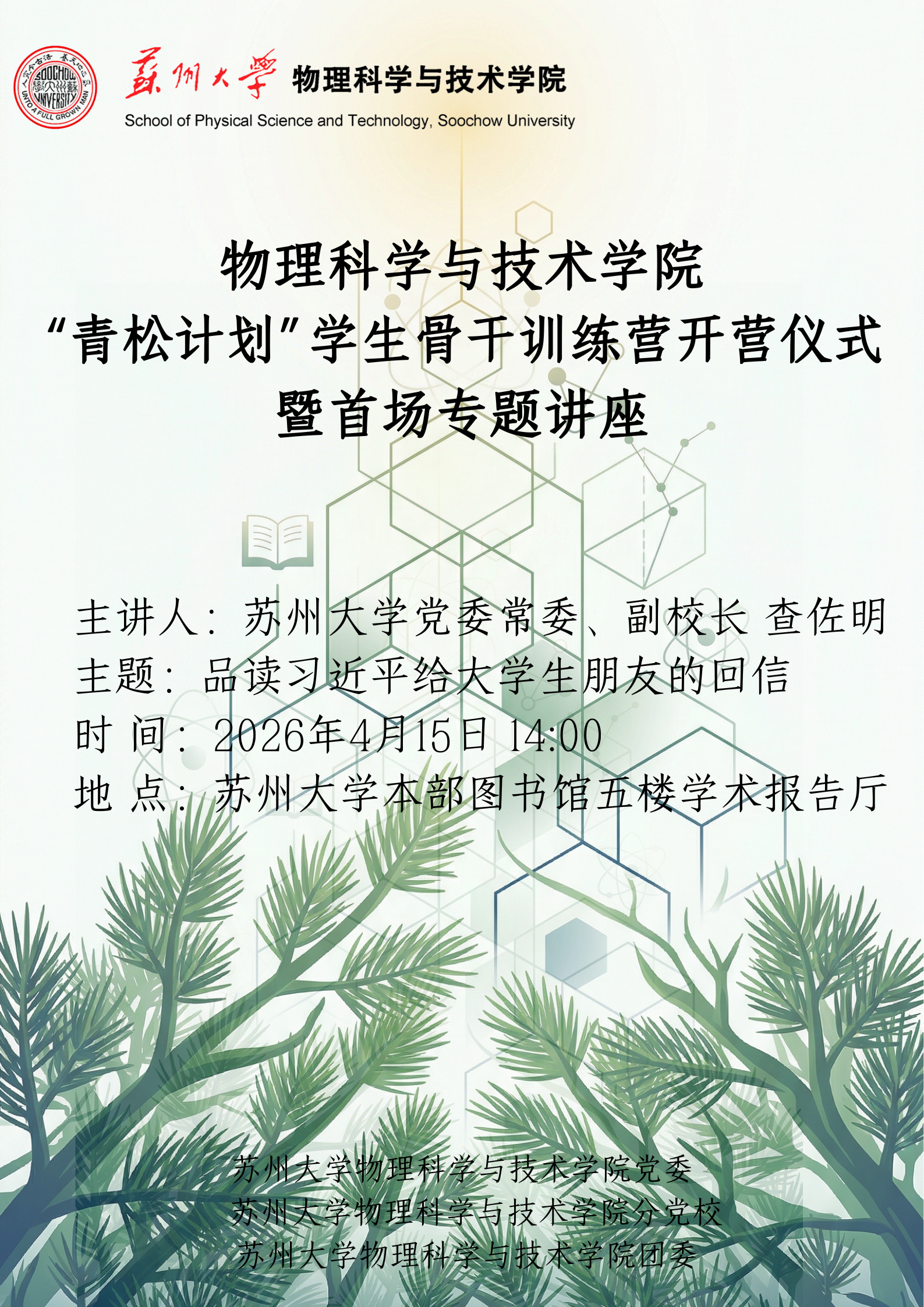 物理科学与技术学院 “青松计划”学生骨干训练营开营仪式 暨首场专题讲座