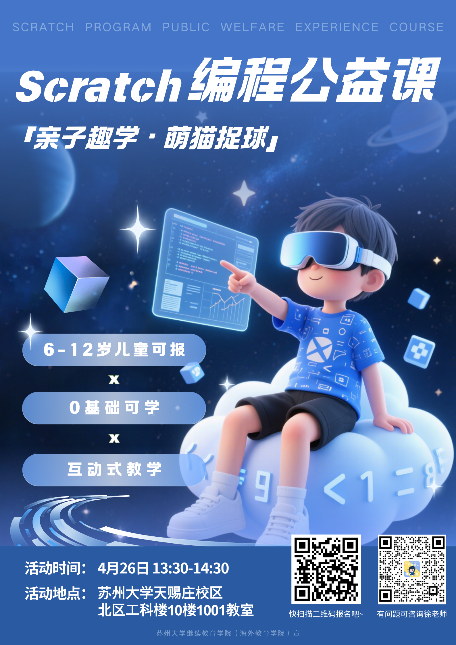 继续教育学院(海外教育学院)公益体验课:亲子趣学·萌猫捉球——Scratch编程