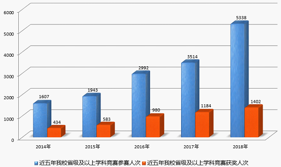 随着学校对学科竞赛日益重视,学科竞赛项目的范围不断扩大,激发了学生的参赛热情,学生受益面明显扩大,竞赛成绩持续提升,并涌现出了一批具有高度责任心和较强业务水平的优秀指导教师,充分营造了“以赛促教、以赛促学”的良好氛围。