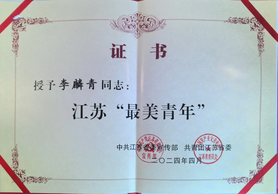 李麟青在我校完成了本科、硕士到博士的学业,品学兼优、励志奋进,曾获“中国大学生自强之星”“江苏青年五四奖章”“江苏省自强模范”“江苏省大学生就业创业年度人物”“‘智创未来’强国青年创业者”“苏州市十大杰出青年”“苏州市优秀共产党员”“苏州时代新人”等荣誉,其典型事迹和励志故事多次被《人民日报》、央视新闻关注报道。