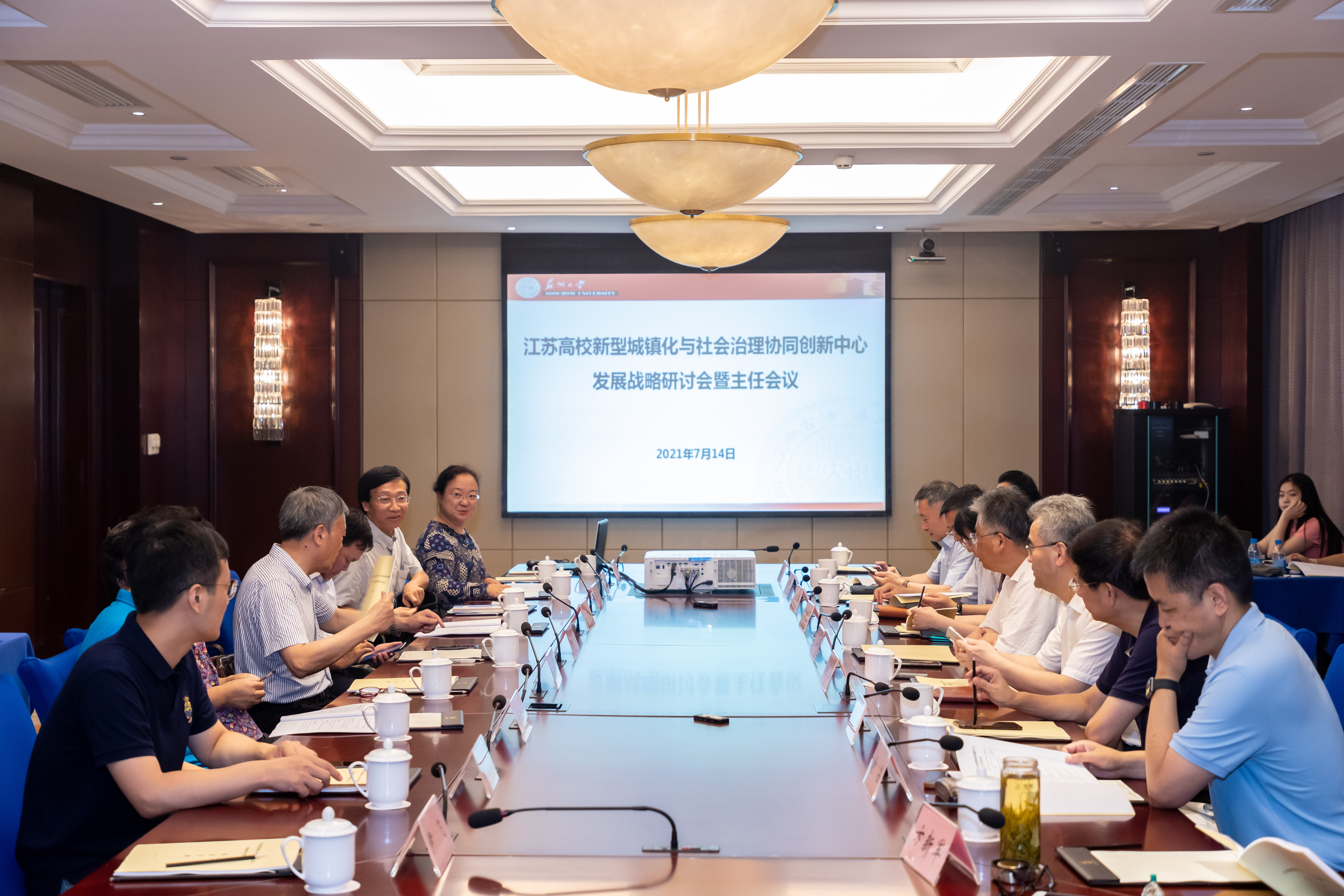 7月14日,江苏高校新型城镇化与社会治理协同创新中心发展战略研讨会暨首席科学家和主任聘任仪式举行。校党委常委、副校长张晓宏,“2011计划”办公室主任仇国阳、副主任董晓惠,中心首席科学家任平、主任钱振明,中心常务副主任、人文社会科学处处长于毓蓝,中心副主任、相关专家出席此次会议。