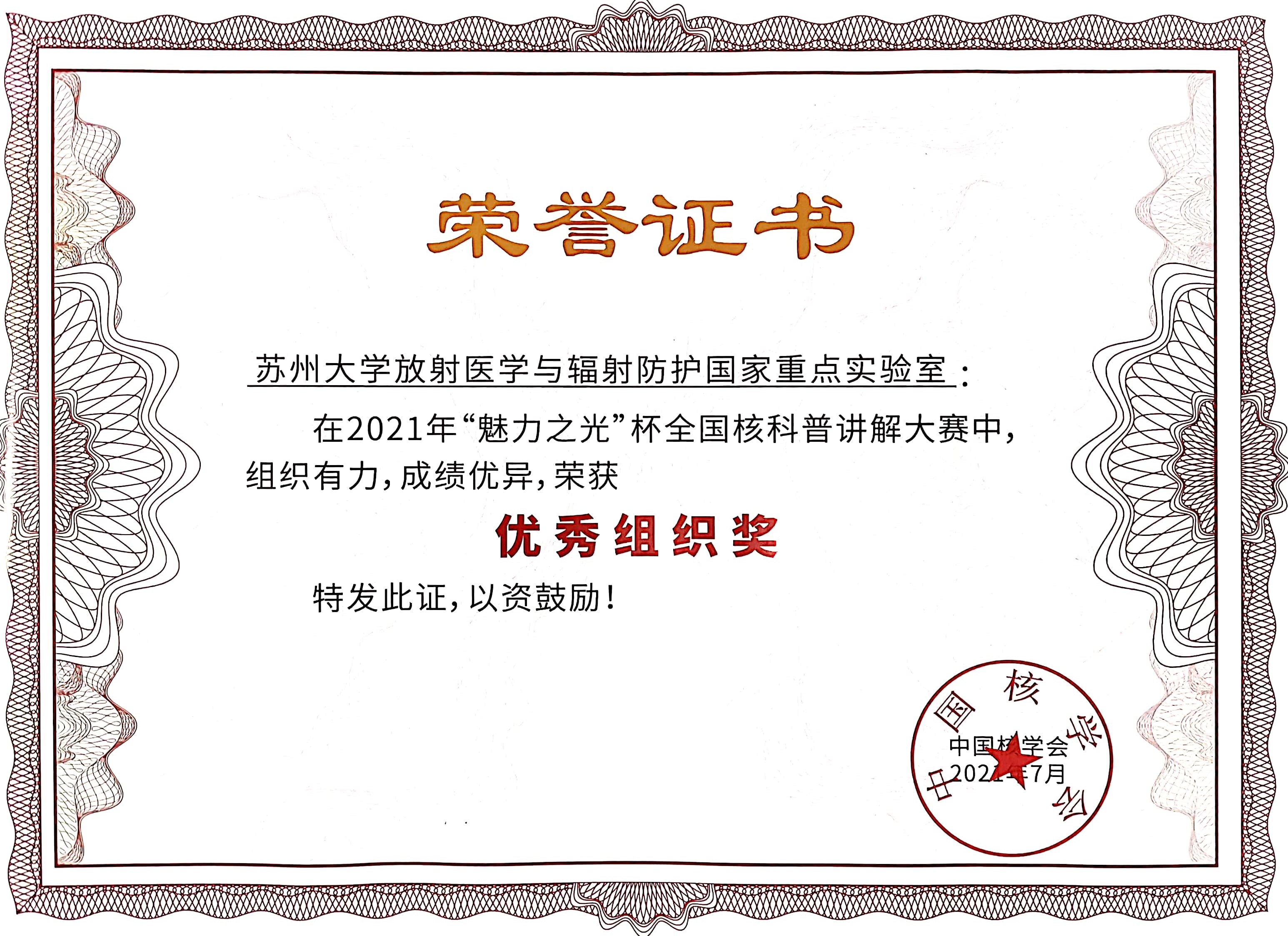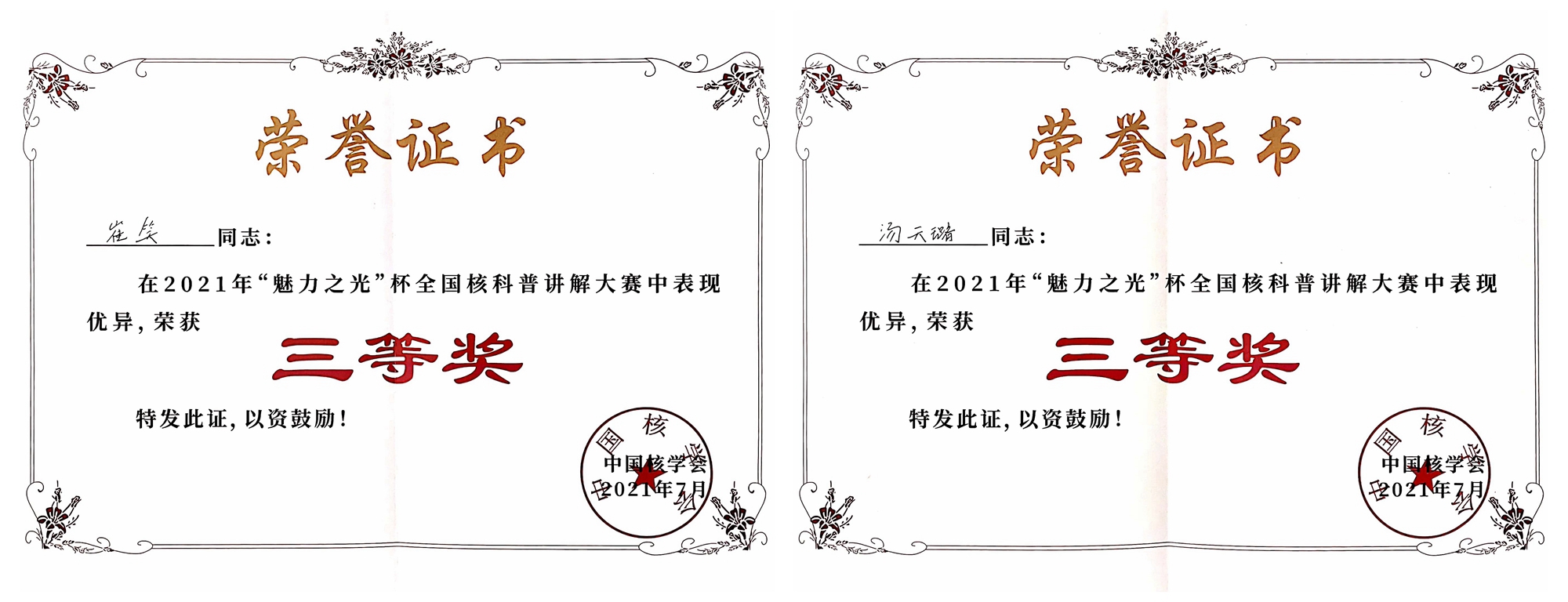 7月12日-14日,由国家核安全局、国家国防科技工业局、国家能源局、中国科学技术协会指导,中国核能电力股份有限公司和中国核学会联合主办,秦山核电有限公司承办的第九届“魅力之光”杯全国核科普讲解大赛在浙江海盐举行。选拔自涉核专业高校、事业单位、企业等全国14个代表队经过初赛、半决赛、决赛层层选拔,最终20名讲解选手入围,大家围绕“魅力核电、美丽中国”的主题以真实、立体、生动的方式普及科学知识,弘扬科学精神,表达爱党、爱国、爱科普事业之情,尽显核科普工作的硬核力量和人文之美。苏州大学放射医学与辐射防护国家重点实验室崔笑和汤天璐在本次大赛中获三等奖,崔笑获最具人气奖,苏大国重室获优秀组织奖。