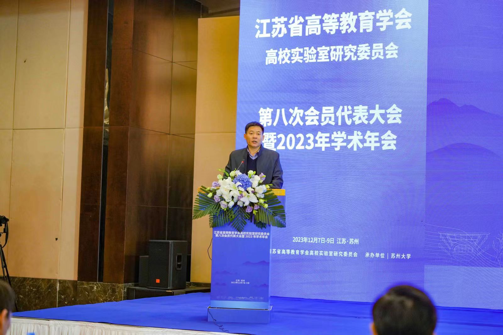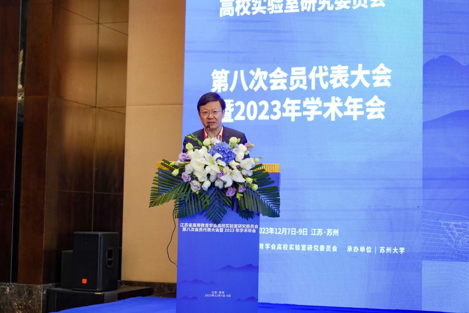 为深入学习贯彻习近平新时代中国特色社会主义思想,持续提升全省高校实验室建设与管理水平,12月7日至9日,由省高校实验室研究会主办、我校承办的省高等教育学会高校实验室研究委员会第八次会员代表大会暨2023年学术年会在苏召开。中国高等教育学会实验室管理工作分会副理事长兼秘书长刘克新,省教育厅科学技术与产业处副处长丁同玉,我校党委常委、副校长李孝峰,南京大学校长助理李斌,第七届理事会全体理事、特邀理事及会员代表,第八届理事会理事候选人、特邀嘉宾,省高等学校实验室与实验教学管理、设备采购、资产管理负责人、实验教学中心负责人及教师代表等500余人参加会议。开幕式由省高校实验室研究会副理事长兼秘书长董林主持。