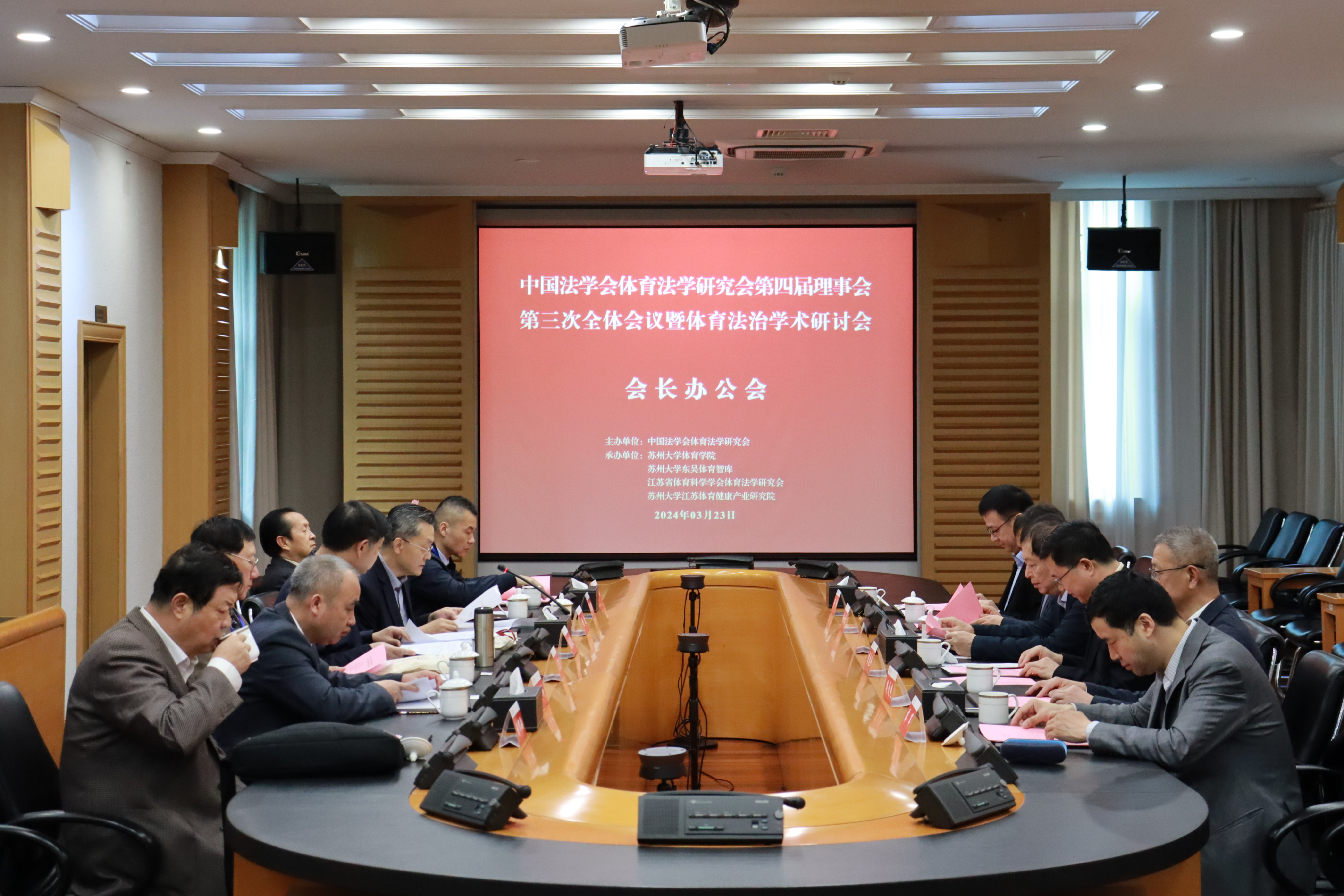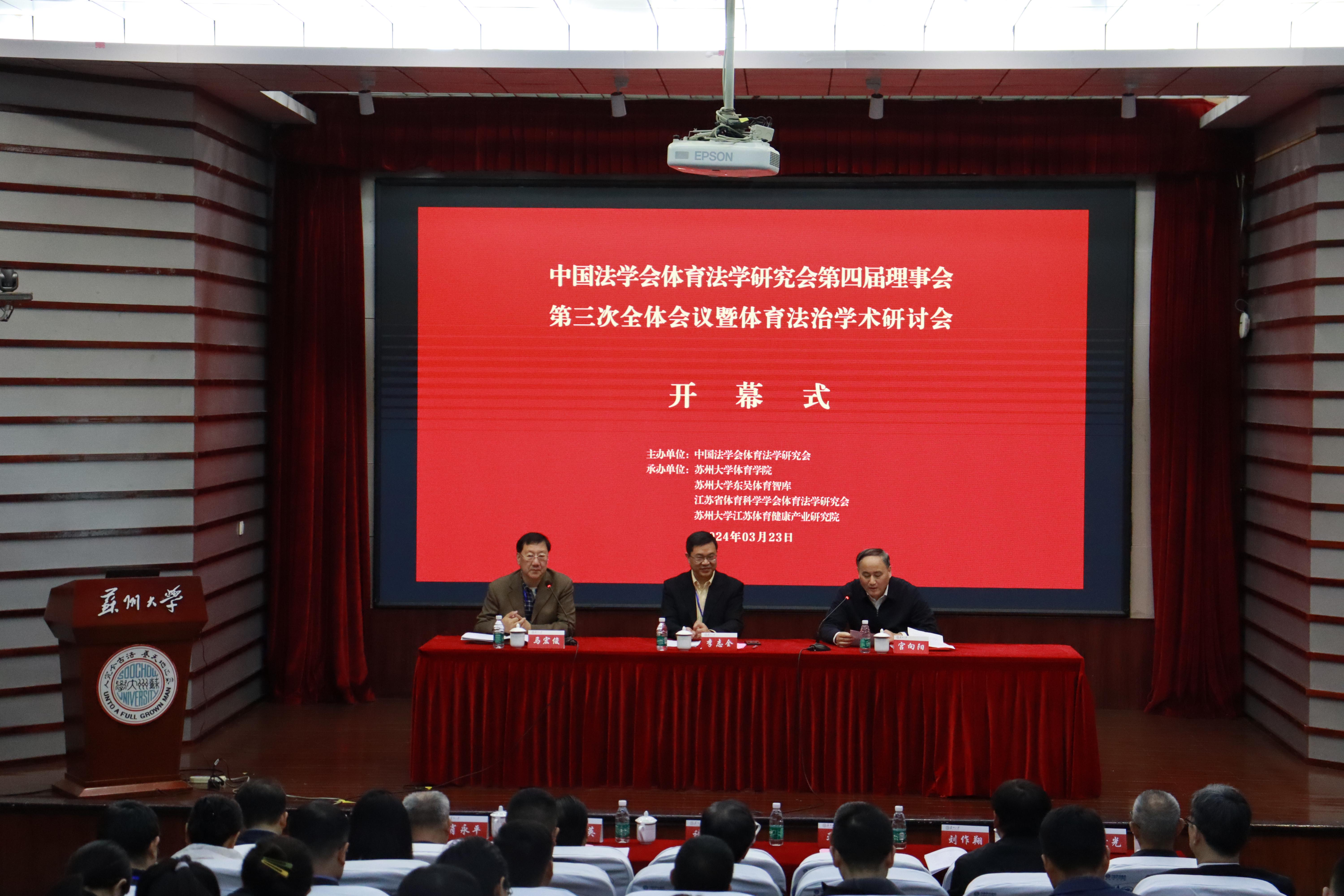 3月23日,中国法学会体育法学研究会第四届理事会第三次全体会议暨体育法治学术研讨会在我校召开。会议由中国法学会体育法学研究会主办,我校体育学院、东吴体育智库、省体育科学学会体育法学研究会和苏州大学江苏体育健康产业研究院承办。中国法学会党组成员、副会长张苏军,国家体育总局副局长、党组成员张家胜,国家体育总局政策法规司司长褚波、反兴奋剂中心主任李志全、政策法规司副司长魏振勇,中国法学会研究部二级巡视员王伟国,我校党委书记张晓宏,校党委常委、纪委书记、派驻监察专员宫向阳等出席会议。参加本次会议的还有150余名来自全国各地体育局、高校及法律实务部门的专家学者。