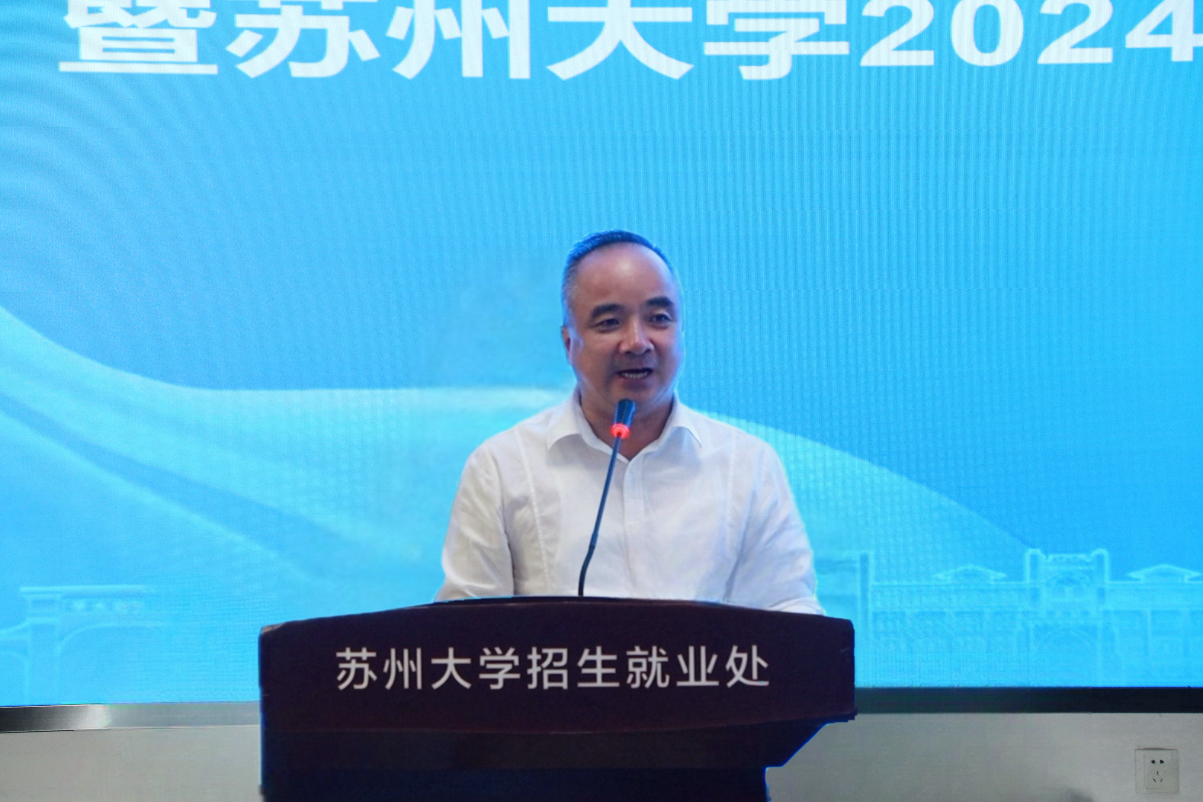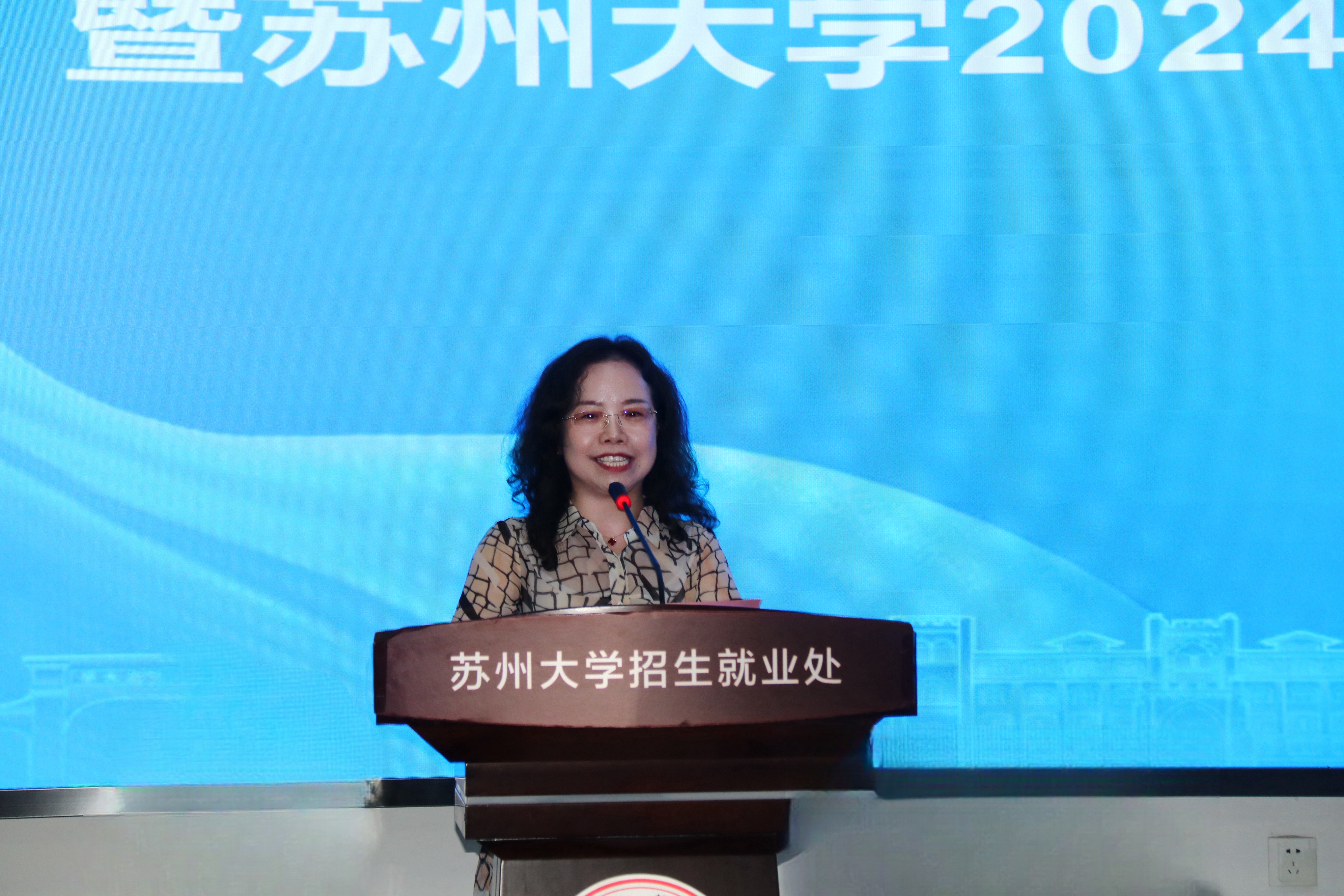 5月22日,2024年苏州大学优秀实习生项目师范专场招聘会暨苏州大学2024年师范科技文化艺术节开幕式在独墅湖校区招聘大厅举办。我校党委常委、副校长查佐明,西安交通大学苏州附属中学党委书记刘雁,我校创新创业学院副院长钱春芸,研究生院副院长徐维英,招生就业处副处长张芸,师范学院院长兼基础教育管理办公室主任陈国安,各师范类专业学院(部)领导、老师和学生代表参加活动。开幕式由师范学院副院长张佳伟主持。