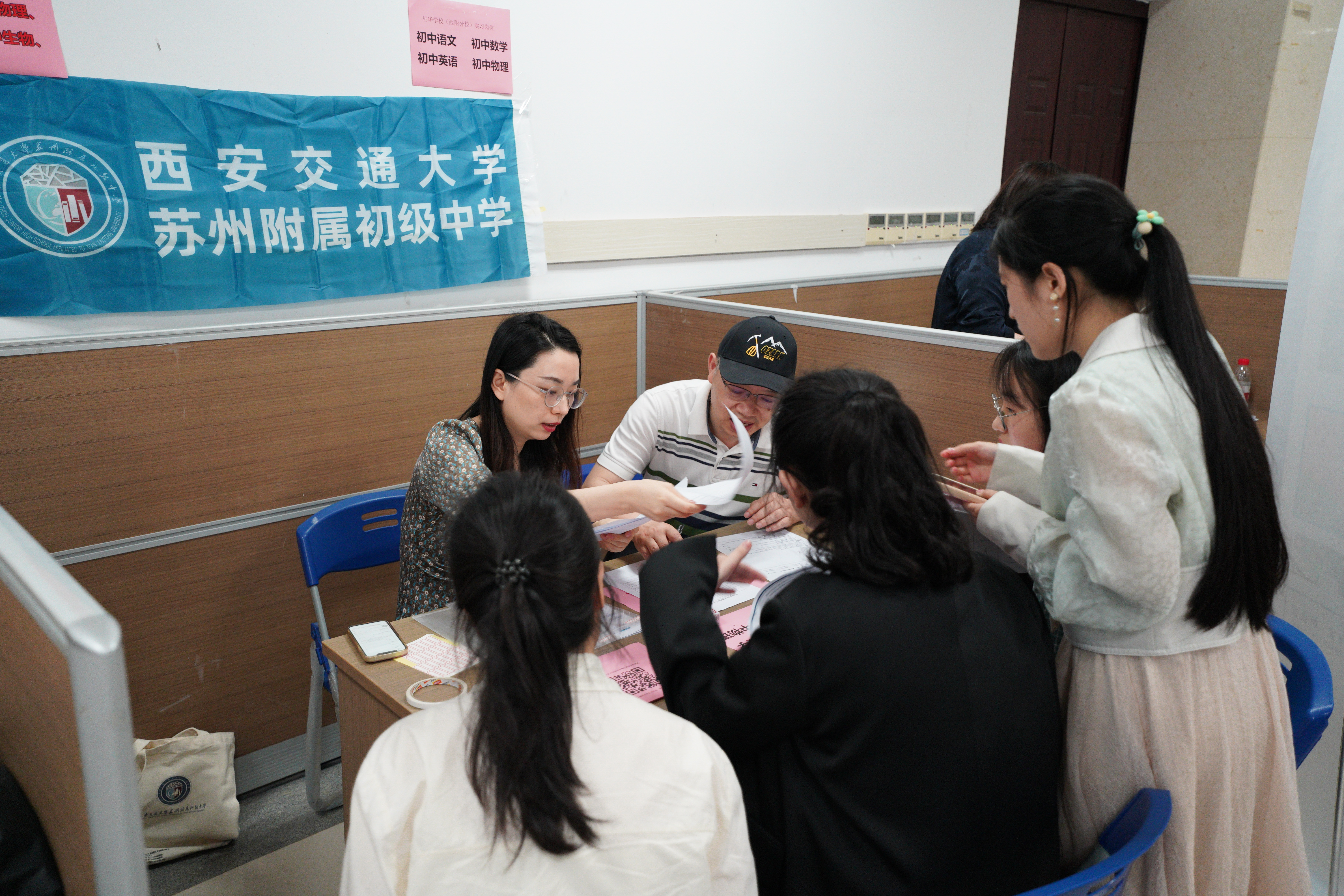 开幕式后,2024年苏州大学优秀实习生项目师范专场招聘会举行,学生与招聘单位展开沟通与交流,现场气氛热烈。