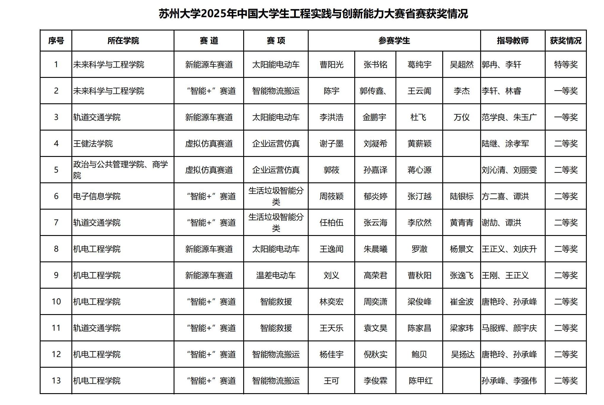 4月18日至20日,2025年江苏省大学生工程实践与创新能力大赛在江南大学举行。我校选派的14支队伍经过激烈角逐,获得特等奖1项、一等奖2项、二等奖10项。
