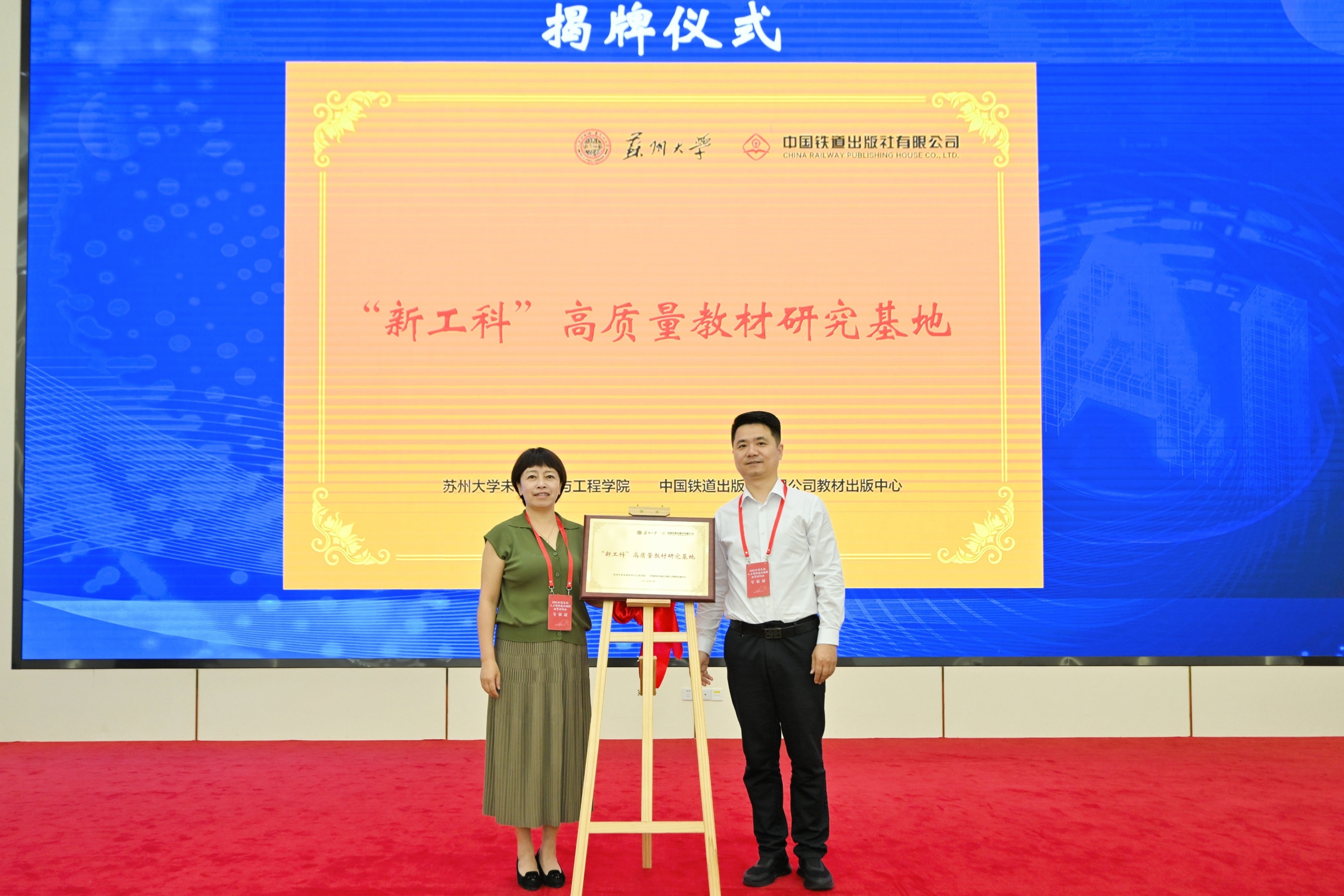 未来科学与工程学院与中国铁道出版社有限公司两家共建“新工科”高质量教材研究基地揭牌,中国铁道出版社有限公司向学院赠书,开启双方共建新篇章。会上还进行了3种《人工智能通识》及1种《生成式人工智能应用》教材发布仪式,该教材涵盖人工智能等多方面核心内容,融入跨学科案例与实践指导,将成为高校人工智能通识课程重要教学资源。