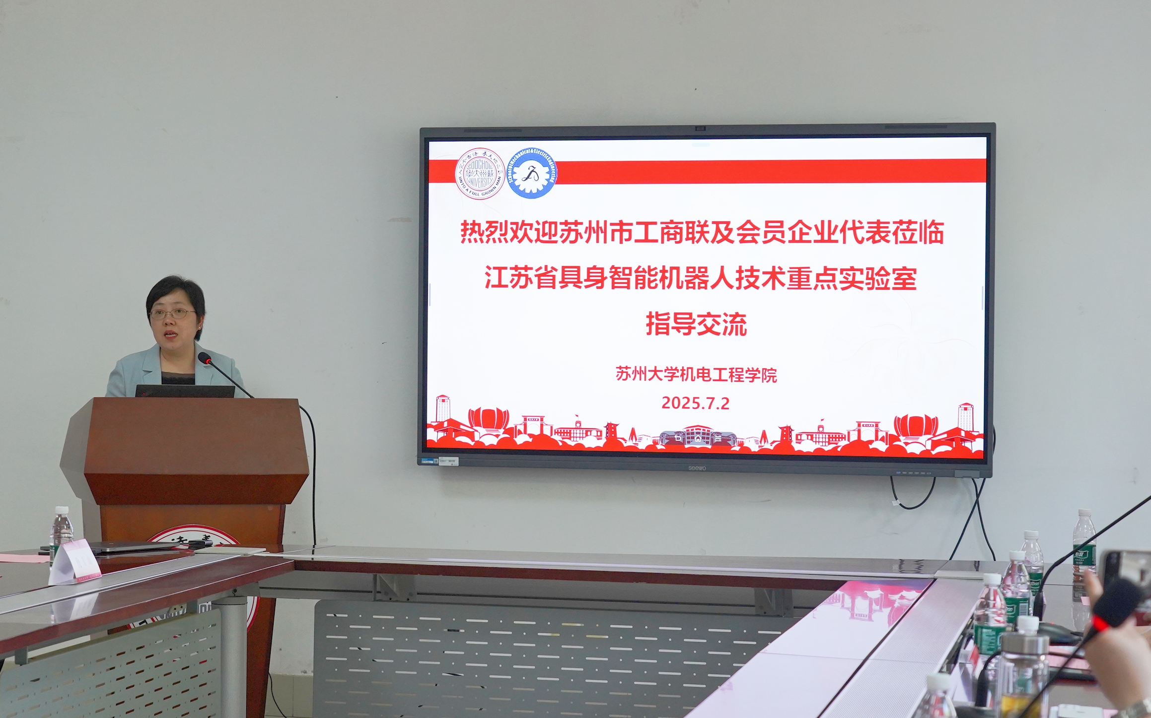 张正彪对苏州市工商联一行表示欢迎。他指出,“强链”行动构建了新的创新生态,高校与企业突破传统的“技术供给—需求对接”单向模式,转变为携手应对全球挑战的创新共同体。苏州大学期待以此模式为载体,构建“高校研发—商协会纽带—民企转化”的创新闭环,助力苏州具身智能产业在核心技术突破、产品创新研发等方面实现更大飞跃,为苏州经济高质量发展提供源源不断的科技支撑。