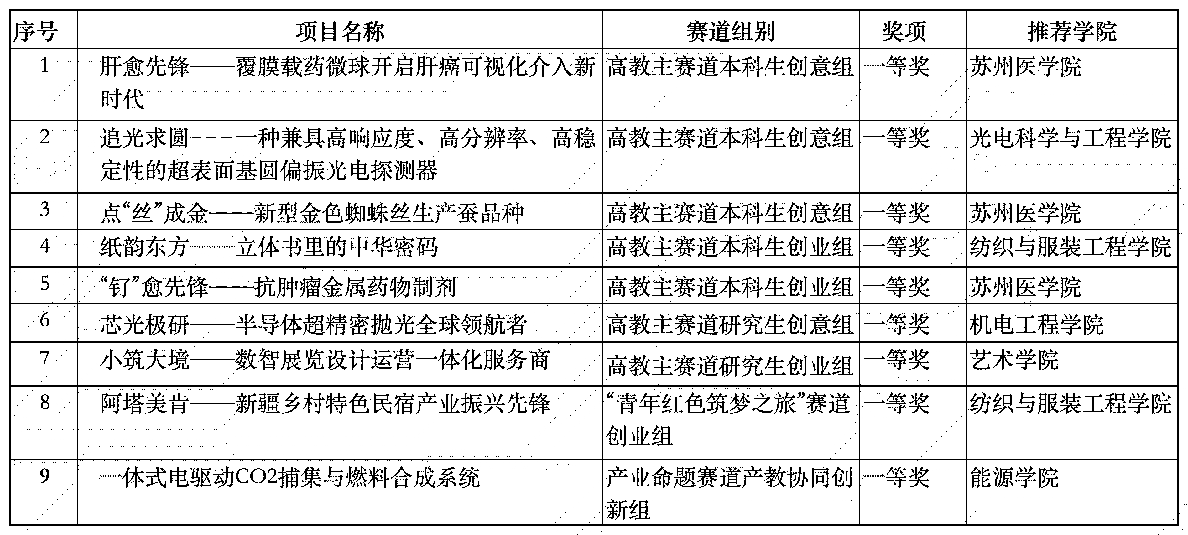 7月8日至11日,“建行杯”江苏大学生创新大赛(2025)决赛举行,来自全省157所高校的8万余支团队、32万余人次报名参赛,规模再创新高。我校在本届大赛中共获得一等奖9项,二等奖7项,三等奖11项,在主赛道中新医科、新农科、新文科、新工科四个组别实现金奖全覆盖,我校学生团队以卓越的创新思维和扎实的实践能力脱颖而出,充分展现了苏大学子的青春风采。