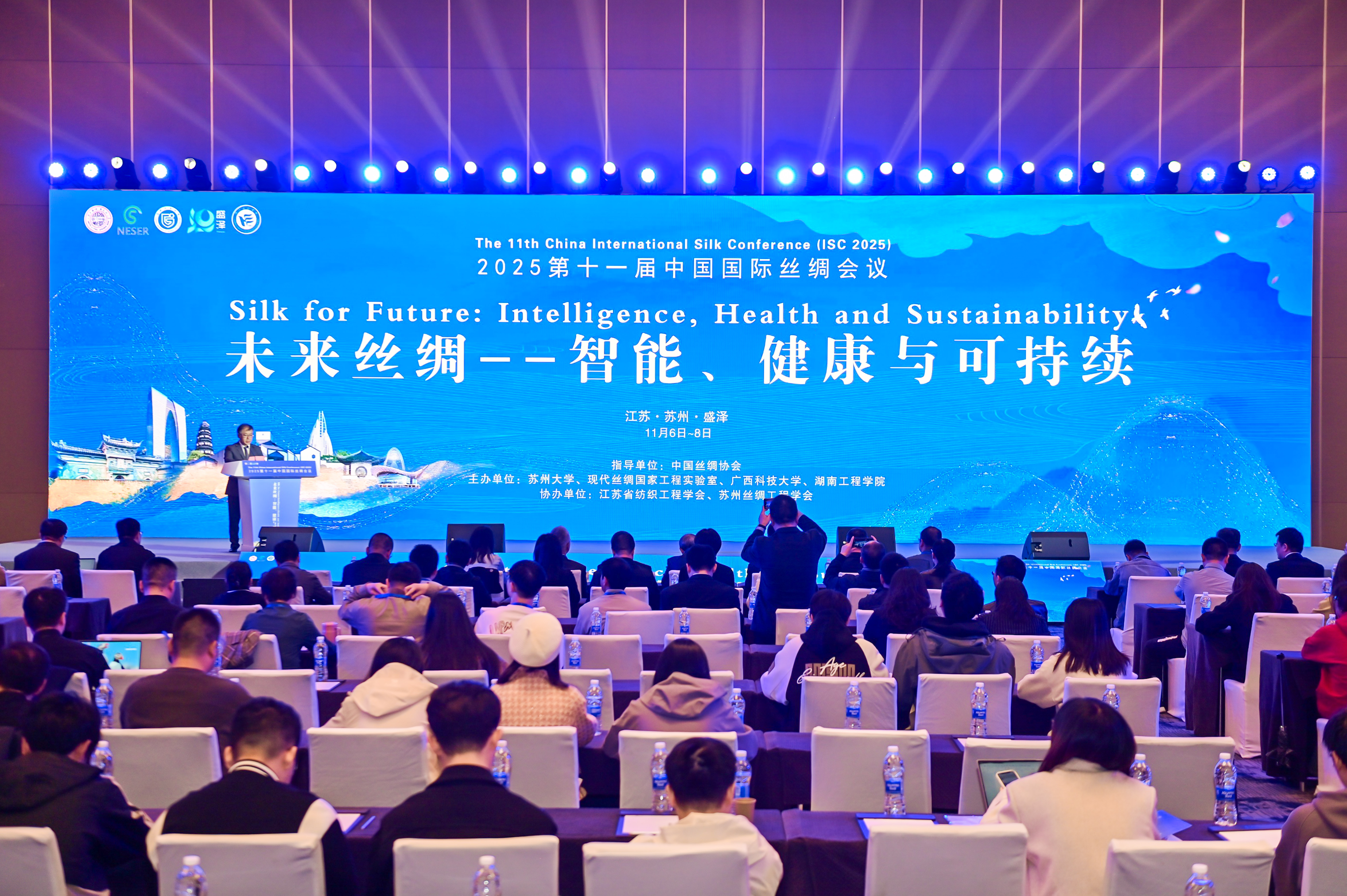 11月6日至8日,2025第十一届中国国际丝绸会议(ISC 2025)在苏召开。大会由中国丝绸协会指导,我校、现代丝绸国家工程实验室、广西科技大学和湖南工程学院主办,江苏省纺织工程学会、苏州市丝绸工程学会协办。中国丝绸协会党支部书记、监事长钱有清,中国驻纽约总领馆、前正司级科技参赞邢继俊,我校党委副书记、副校长沈明荣,中国丝绸协会副秘书长杨爱萍,吴江区副区长、盛泽镇党委书记陈宇等出席开幕式。来自多个国家和地区的现代丝绸领域的专家学者们以“未来丝绸:智能、健康与可持续”为主题,深入探讨,共话合作。开幕式由我校纺织与服装工程学院院长张克勤主持。
