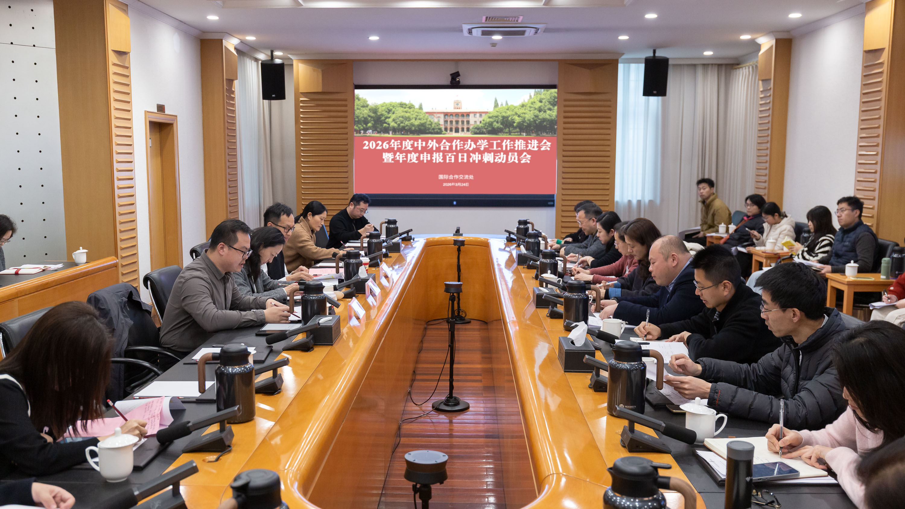 为深入贯彻落实学校国际化发展战略,抢抓教育对外开放新机遇,扎实推进2026年度中外合作办学工作,切实提升项目申报质量与水平,3月24日,我校召开中外合作办学工作推进会暨年度申报百日冲刺动员会。副校长吴嘉炜出席会议,十余家近期拟开展项目申报的学院(部)相关负责人参加会议。会议由国际合作交流处处长李彦光主持。
