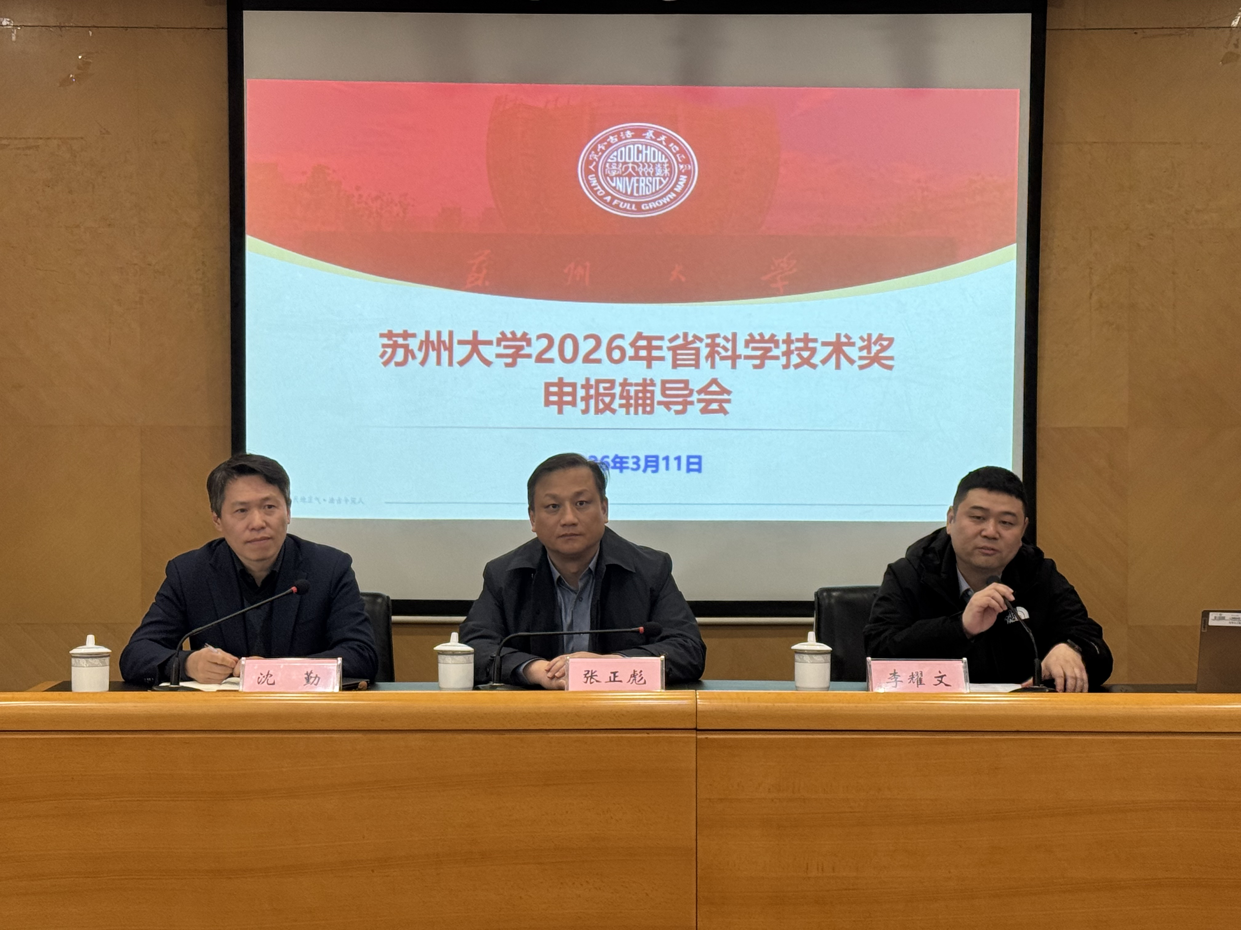 为精准把握省科学技术奖申报要求,提升我校申报项目的质量与竞争力,3月11日下午,我校召开2026年江苏省科学技术奖申报辅导会。校党委常委、副校长张正彪出席会议,南京工业大学科学研究院副院长袁正英、我校放射医学与防护学院院长王殳凹受邀作专题辅导报告。自然科学类各学院(部)分管科研负责人、科研秘书及本年度拟申报项目团队核心成员等70余位教师参会,会议由科学技术研究院院长李耀文主持。