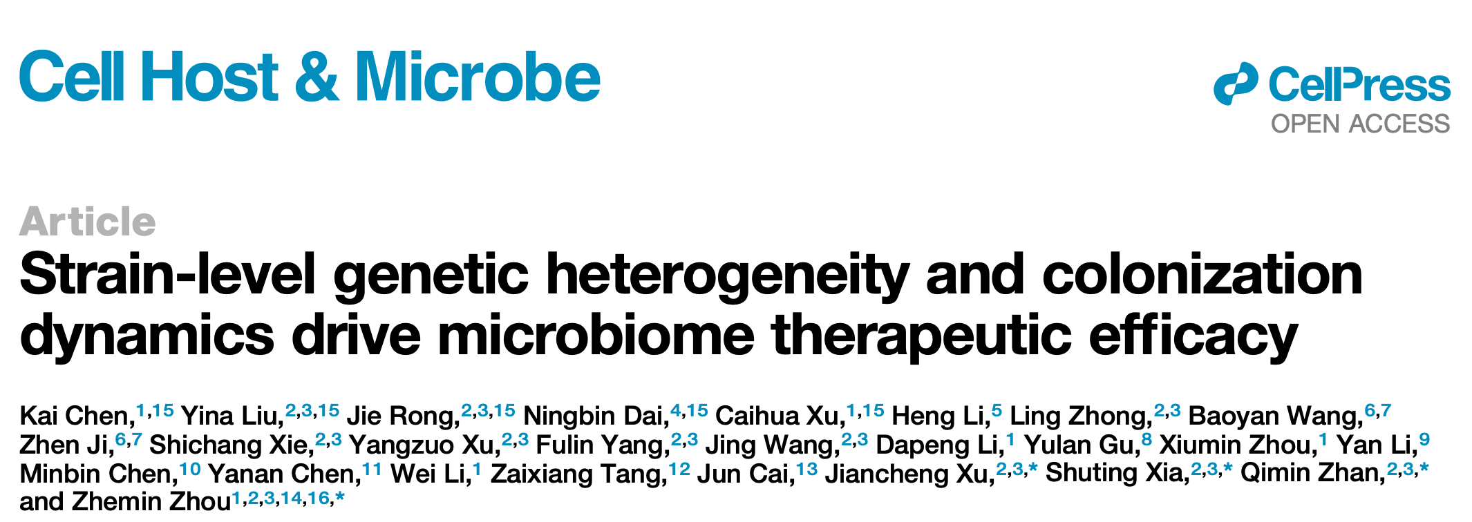 近日,我校癌症研究院周哲敏教授联合詹启敏院士团队,在国际顶尖微生物学术期刊《细胞宿主与微生物》Cell Host & Microbe在线发表了题为“Strain-Level Genetic Heterogeneity and Colonization Dynamics Drive Microbiome Therapeutic Efficacy”的研究论文。该研究不仅在临床试验中提示了粪菌移植(FMT)联合免疫治疗可显著改善PD-L1阴性非小细胞肺癌患者的预后,更通过跨疾病队列的大规模数据分析,揭示了肠道微生物在定植动力学与种内遗传异质性方面的普适性规律。这一成果为下一代精准微生态药物的设计与定植干预提供了关键的理论框架。