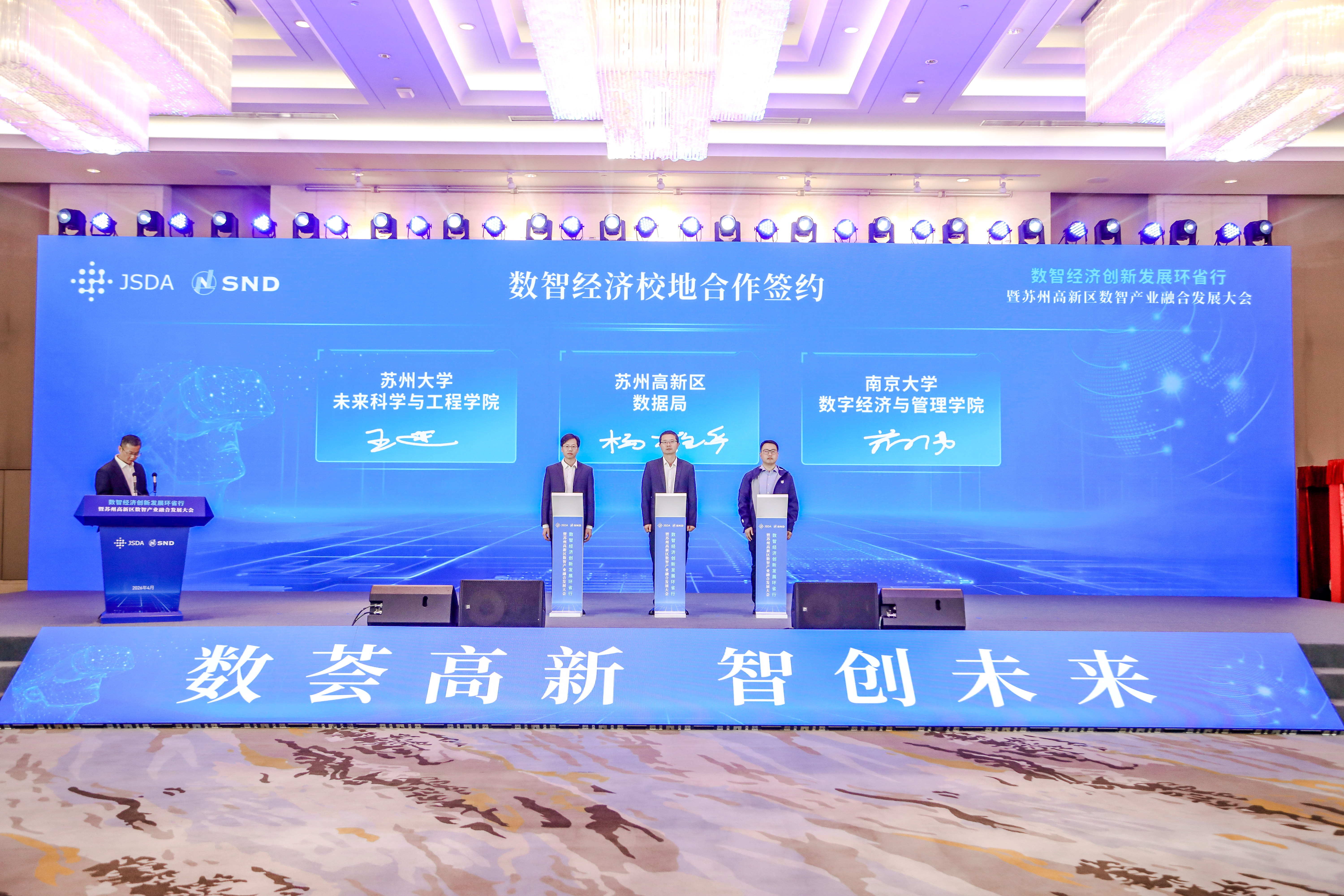 4月10日,“数智经济创新发展环省行”暨苏州高新区数智产业融合发展大会在苏举行。省数据局党组成员、副局长王万军,市政府副秘书长吴旭翔等出席会议。我校党委常委、副校长李孝峰受邀出席活动,见证校地合作协议签署。未来科学与工程学院(江苏省人工智能学院)常务副院长王进代表学校与相关单位签署校地合作协议。