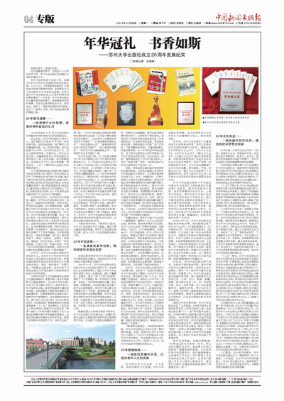 20年来,苏州大学出版社根植百年老校的沃土,依托苏州大学的学科优势和地处江南名城苏州的地域优势,把推动高校教学科研进步和促进地方文化建设放在首位,提出“特色强社”发展之路,不断整合出版资源,逐步形成了与高校出版社任务相匹配的大教育特色和地域文化研究特色。