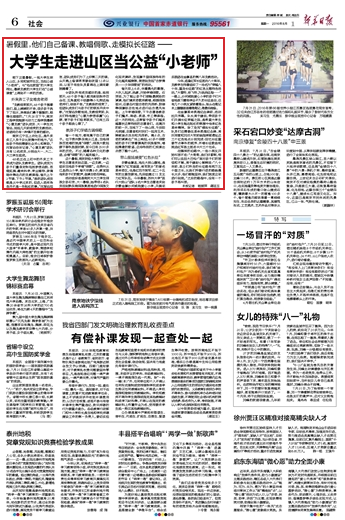 眼下正值暑假,一批大学生深入山区、乡间和城市社区,当起公益“小老师”。与“宅在家里”的大学生相比,暑期支教的大学生们在“公益课堂”上得到不一样的历练。
