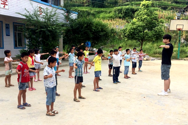 “你们有没有信心接住老师?”支教队员段宇涵带来的是心理团体辅导课,他通过游戏让孩子们明白团队信任的重要性。还有负责体育课的支教大学生,精心设计了体能训练课、热身基础课等,丰富了学校的体育课。