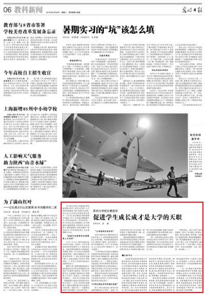 在日前公布的江苏教育改革创新典型名单中,苏州大学两个人才培养改革案例上榜,虽然形式各异,但以学生为本的办学理念贯穿其中。不久前,校长熊思东更是围绕学生励志、学习、学风等议题密集召开3次学生座谈会。“学生是学校一切工作的出发点和落脚点,所有围绕学生做的事情、花的时间、付出的努力,都是值得的,也是必需的。”熊思东认为,学生的成长成才,怎么重视都不为过。