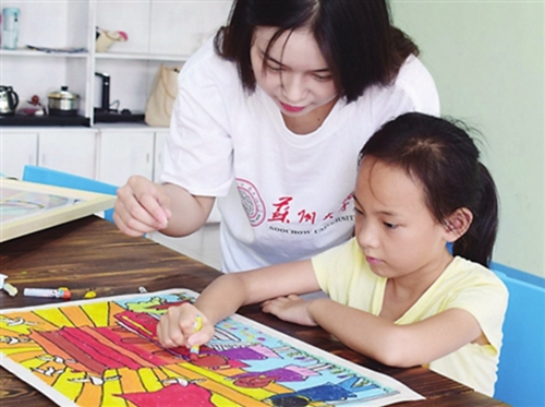 近日,苏州大学艺术学院团委联合郭巷街道团工委、独墅湖实验小学开展了“喜迎十九大,青春建新功”志愿服务活动。10位来自苏州大学艺术学院的大学生志愿者组成“文艺下乡”暑期社会实践小分队,以“梦想公益夏令营”的形式为郭巷街道38名小朋友提供了为期7天的美术课程免费培训。