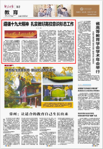 意识形态工作是党的一项极端重要的工作。党的十九大报告从牢牢掌握意识形态工作领导权的高度对意识形态工作做出了新的重要战略部署,为高校加强和改进新形势下意识形态工作指明了方向。当前,苏州大学党委正在认真学习、深入领会、大力宣传、全面贯彻党的十九大精神,以习近平新时代中国特色社会主义思想为指引,切实肩负起意识形态工作的主体责任,不断增强意识形态工作的主导权和话语权。