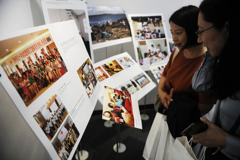 8月31日,参观者在苏州大学红十字国际学院办公楼内参观红十字主题展览。