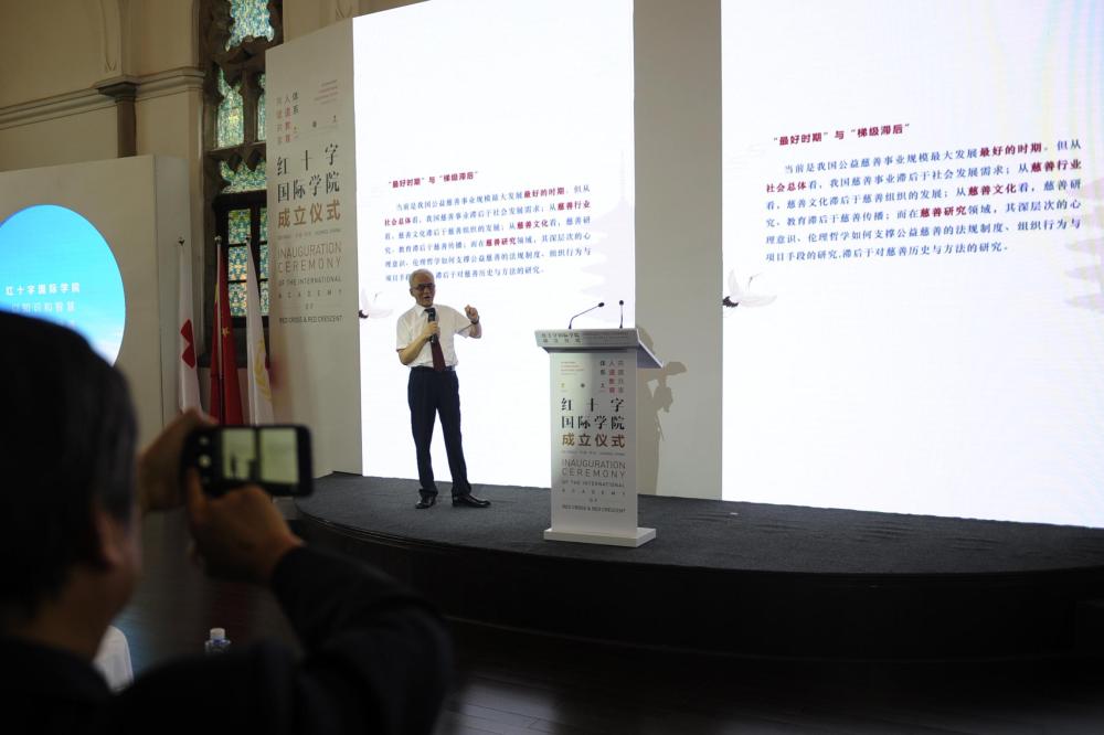 ↑8月31日,专家在红十字国际学院成立仪式上发言。