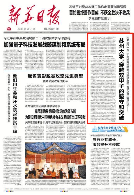 《新华日报》2020年10月18日 头版
