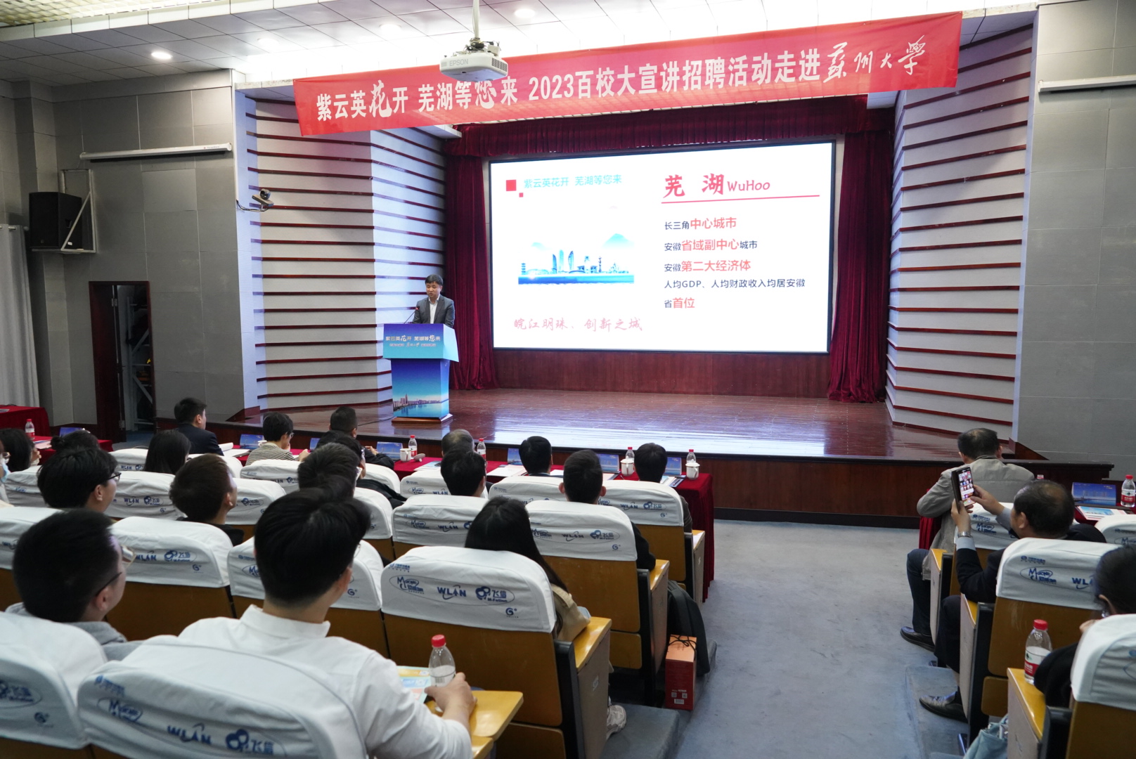 解师生之盼、解改革之难、解发展之需,苏州大学始终坚持“全时段推进、全方位协调、全过程监督、全体人受益”的促就业工作思路,将“引进来”和“走出去”相结合。近日,安徽省宣城、芜湖两市领导亲临苏大宣介引才政策,从“政府、高校、企业、人才”四端发力,通过丰厚的引才政策大力引进优秀青年人才。