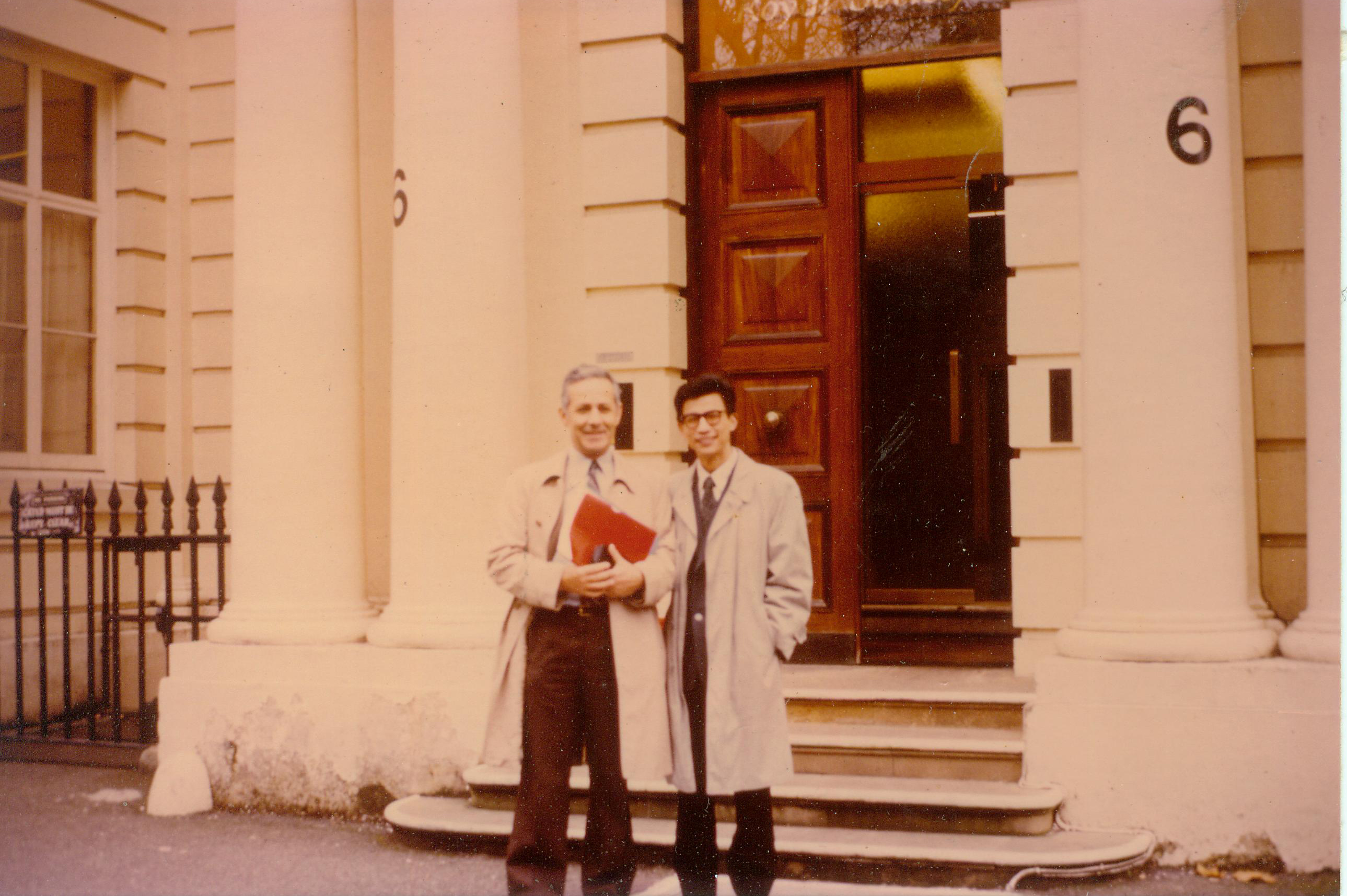 1981年阮长耿(右)与导师卡昂教授(左)在英国皇家学院进行学术交流