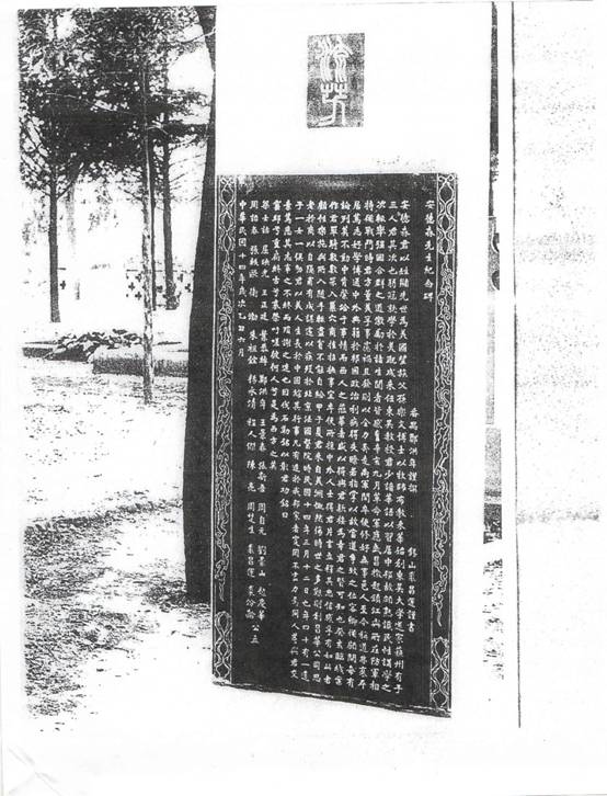 附:安德森先生纪念碑碑文