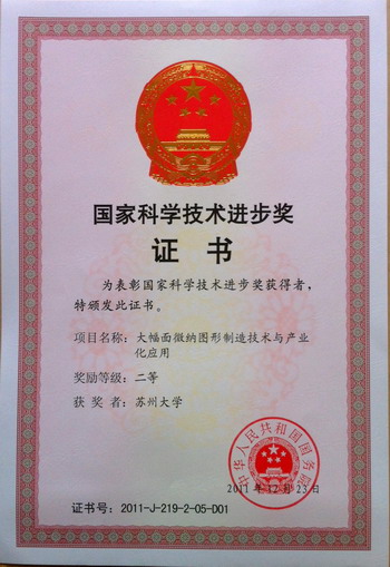 该项目是我校自2007年以来再次以第一完成单位获得的国家科技奖,项目的主要完成人为陈林森、沈雁、周小红、魏国军、浦东林、申溯、朱志坚、方宗豹、朱鹏飞、郭锡平。该项目解决了大幅面下微纳米结构图形的快速制造难题,提出并自主建立了微结构图形柔性制造生产线,填补了国内空白,提升了我国微纳制造行业的国际竞争力。项目获授权发明专利14项,授权实用新型专利2项,软件著作权5项,发表科研论文40余篇。项目成果在公共安全、显示照明、科学研究和印刷包装材料等行业应用,取得重大经济效益和社会效益,促进了我国相关行业的技术进步和国际竞争力。