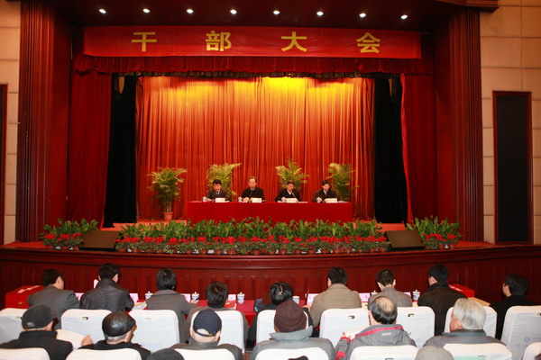 14日上午,我校党委书记王卓君在敬贤堂主持召开了全校干部大会。省委组织部干部五处处长梅仕城,考察组全体成员,校领导班子全体成员,近期退职校领导、校级离退休老同志,校党委委员、纪委委员,全校在职正处职、副处职干部,省级以上人大代表、政协委员、民主党派负责人以及具有高级职称专业技术人员代表,共300余人出席了大会。