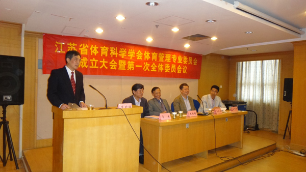 王明暄宣读成立“江苏省体育科学学会体育管理专业委员会”的批文,罗时铭当选为主任委员、江苏省体育局办公室主任王志光、南通大学体育学院院长常生当选为副主任委员。同时,他也希望各位委员借助苏州大学这个基地和委员会的平台,多沟通、多合作,凸显出江苏体育管理的特色。