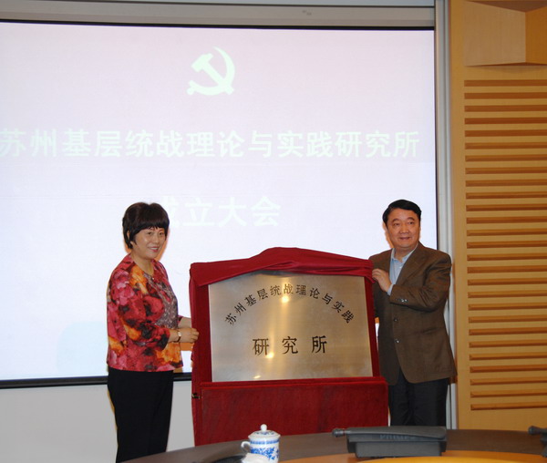 周向群和王卓君共同为“苏州基层统战理论与实践研究所”揭牌。