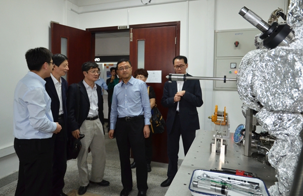 座谈会后,陈鸣明一行参观了纳米科技协同创新中心。调研中,陈鸣明充分肯定了我校在自主创新上取得的成绩,希望考察团成员结合贵州省属高校的实际,充分地消化、吸收苏州大学的办学经验,增强贵州省教育的“造血”能力,办好贵州省的高等教育事业。
