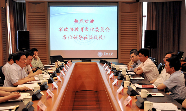 5月28日上午,民盟省委副主委、省政协常委、副秘书长、教育文化委员会副主任吴胜兴,省政协委员、教育文化委员会副主任郭进成、陈建生等省政协委员一行11人,在苏州市政协副秘书长吴建生等领导的陪同下来我校调研考察,并在红楼会议中心座谈。我校党委副书记、纪委书记高祖林,副校长熊思东及相关部门领导参加座谈会。