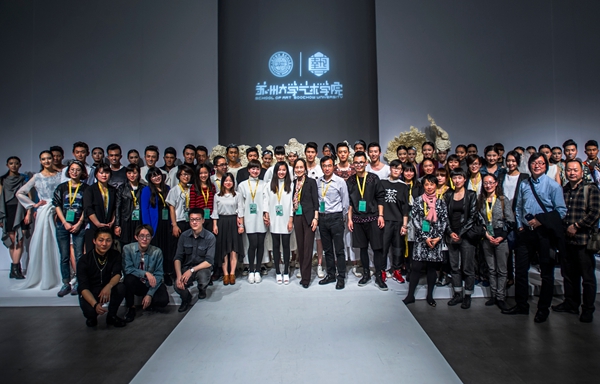 本次活动学院共组织74名师生赴京,活动自上学期启动以来,得到学校领导和教务部的大力支持,院领导多次关心工作进度并莅临排练现场指导动员;由3位教师和31名毕业生组成的设计团队从2013年下半年开始着手筹备和策划工作,并于年底初步敲定各个系列风格、款式、面料及搭配,随后进入毕业设计的制作阶段,同学们克服选材、时间等方面的困难,扎根于工艺房,用每一针每一线传递着他们对艺术的执著与热忱;38名时装表演专业学生在老师的带领下加紧认真排练,精心演绎,最终将“江南印象”16个系列作品的全景呈现在大学生时装周的国际舞台上。