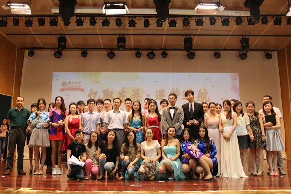 最后,出席本场晚会的领导、嘉宾走上舞台,与演职人员亲切握手并合影留念。至此,“忆取东吴·逐梦远航”苏州大学2014届研究生毕业晚会暨第十一届研究生学术科技文化节闭幕式圆满落下帷幕。
