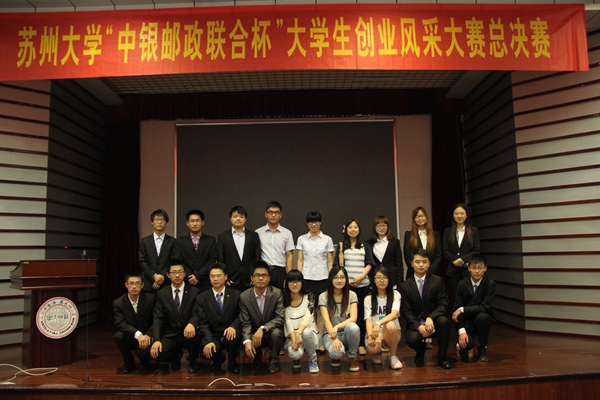 6月4号下午,由招生就业处、中国银行苏州分行、苏州邮政局主办,机电工程学院承办的苏州大学“中银邮政联合杯”大学生创业风采大赛总决赛在本部学术报告厅举行。出席本次大赛的嘉宾有苏州邮政局园区分局局长金明,机电工程学院、沙钢钢铁学院党委书记王永山,机电工程学院副院长冯志华、钮秀山,机电工程学院党委副书记、副院长刘鲁庆。我校教务部教学改革与研究处处长、国家高级职业指导师王剑敏,招生就业处副处长、国家高级职业指导师王清,苏州邮政局副局长吴寒松,苏州邮政局函件局局长吴晓忠,中国银行苏州分行网络金融部副总经理詹亦雷担任本次大赛专业评审。