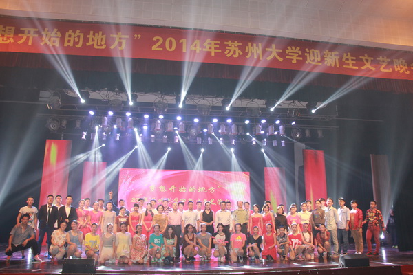整场文艺晚会用唯美的艺术形式带领新同学一同领略了我校深厚的历史文化底蕴;通过当代大学生喜欢的艺术形式展现百年学府的人文情怀与多姿多彩的大学生活。在演出正式开始之前,艺术教育中心的老师向所有同学展示了我校优秀校园文化的靓丽名片——东吴艺术团及其近年来所取得的优秀成果,告诉新同学:心有多大、舞台就有多大,苏州大学一定是你梦想开始的地方!朋辈的影响无不让2014级新同学激情满怀,充满斗志。