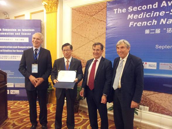 会后,法国医学科学院正式将第二届“法国医学科学院·塞维雅奖”授予了江苏省血液研究所所长、中国工程院院士、协同中心主任阮长耿教授和上海血液学研究所所长、中国工程院院士陈赛娟,以表彰他们在血液病学研究及中法医学科学合作交流方面作出的杰出贡献。