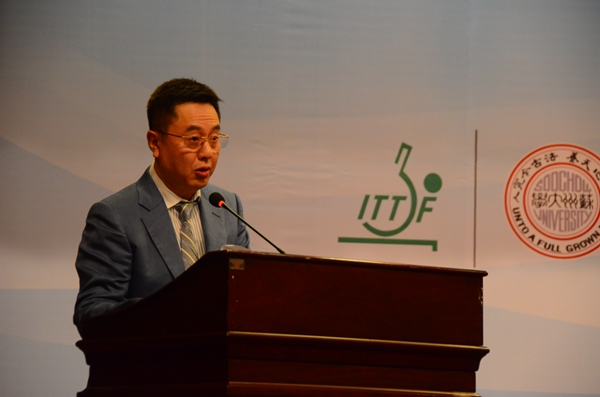 施之皓代表国际乒联和中国乒协对苏州大学师生为本次会议召开做了大量艰苦细致工作表示感谢。他希望国际乒联和中国乒协能与各位专家一起不断推动乒乓球运动的发展,把致力于让全世界更多的人参与乒乓球运动、享受乒乓球的快乐作为共同的追求目标。