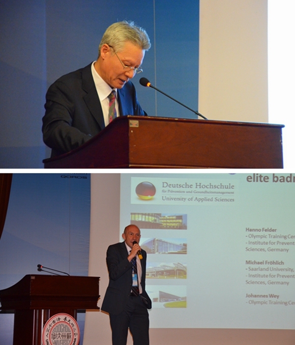 开幕式结束后,国家体育总局体育科学研究所教授王清、德国奥林匹克训练中心生物力学与康复实验室主任Hanno Felder先生分别作了《对准备参加重要国际比赛的中国乒乓球精英运动员科学支持》和《国际和国内羽毛球精英球员的肌肉强度值和力量比》的大会主题报告。