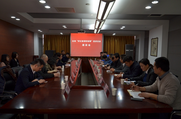 演讲结束后,江苏省三教办副主任周强和九位记者等媒体人与我校师生进行座谈。江苏省三教办副主任周强指出:“好记者讲好故事”巡回演讲旨在通过记者们讲述生动形象的新闻采访事件,培养同学们树立正确的马克思主义新闻观。记者与师生们围绕当前媒介条件下传统媒体人与新媒体的互动、女性媒体人发挥自身优势、以及未来新闻教育的培养方向等问题展开讨论。巡讲团的记者们用自身体会告诉新闻专业的学生,报道在以内容为王的同时也应注重对新媒体技术的培养。最后《无锡日报》的记者高飞引用《南方周末》2016年新年献词鼓励同学们:“在这个媒介巨变的时代,记者要和善良为伍,与智者同行”。