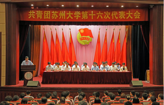 6月14日下午13:30,共青团苏州大学第十六次代表大会在天赐庄校区敬贤堂召开。校党委书记王卓君,校长熊思东,团省委副书记司勇、组织部部长陈鹏、高校工作部部长陈文娟,团苏州市委书记万利,校党委副书记、副校长江作军,副校长陈一星、杨一心出席了本次大会。南京师范大学、苏州科技大学、苏州经贸职业技术学院等兄弟高校团委同仁到会祝贺。出席会议的还有学校相关职能部门领导、各学院(部)分管学生工作的领导,248名正式代表参加了大会。